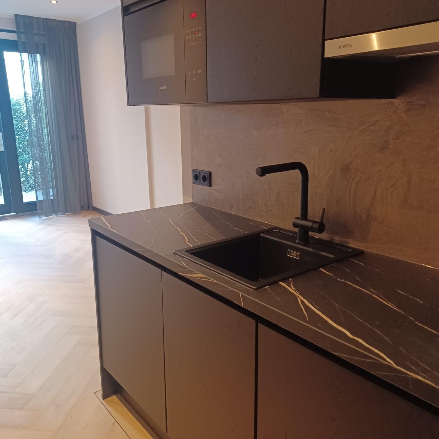 Het appartement is volledig gerenoveerd en luxe afgewerkt. De woonkamer is licht en ruim, met een moderne uitstraling en toegang tot de tuin. De open keuken is voorzien van hoogwaardige afwerking en biedt voldoende ruimte voor al uw kookwensen.