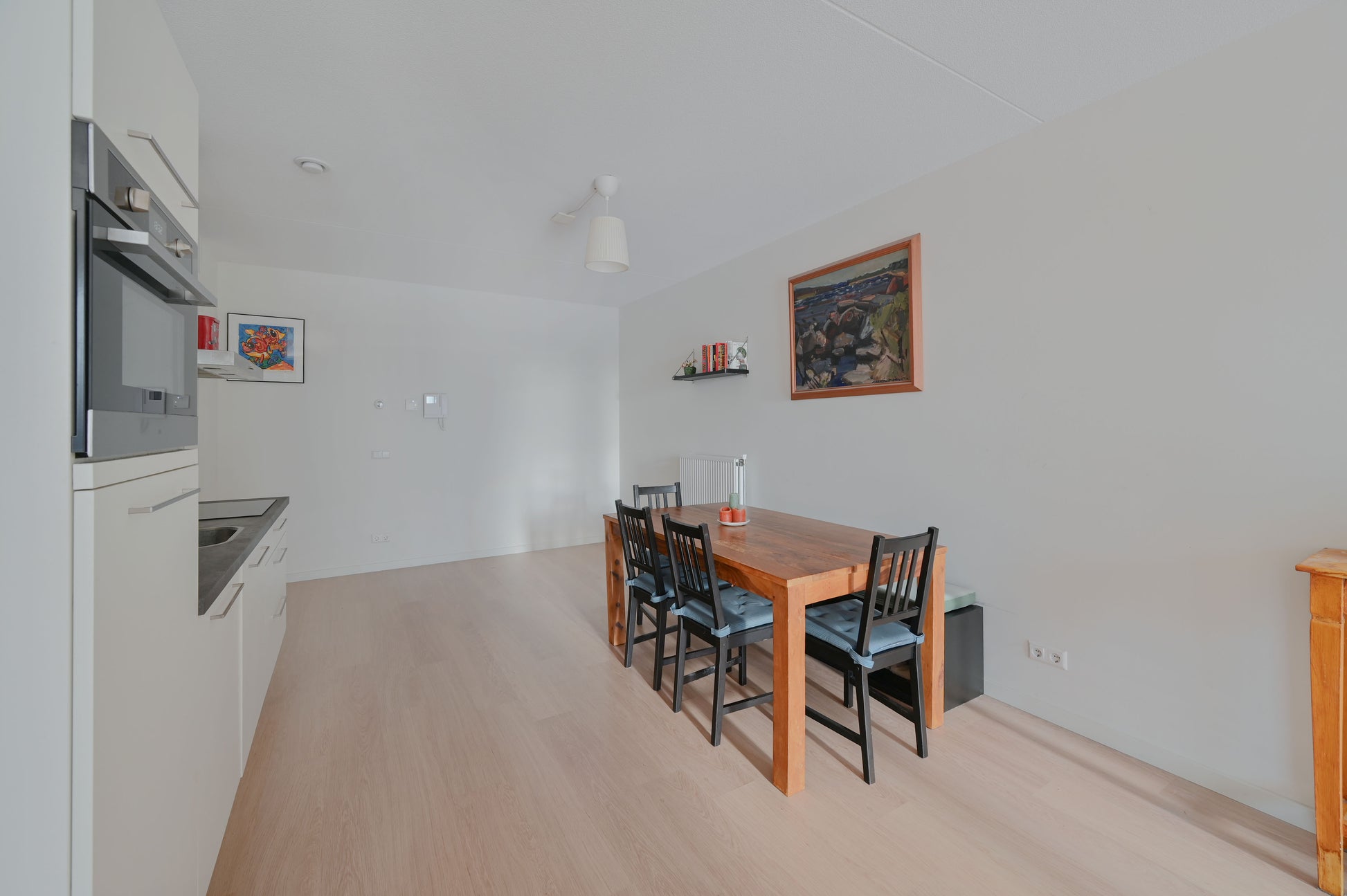 Het appartement ligt op de eerste verdieping en is keurig afgewerkt en uitstekend onderhouden. De woonruimte heeft een fijne, open sfeer met een moderne keukenopstelling en ruimte voor een comfortabele leef- en slaapzone. Een extra meerwaarde is het balkon, dat straks uitkijkt op de nieuw te ontwikkelen groene binnenplaats – een rustige en prettige plek midden in de wijk.