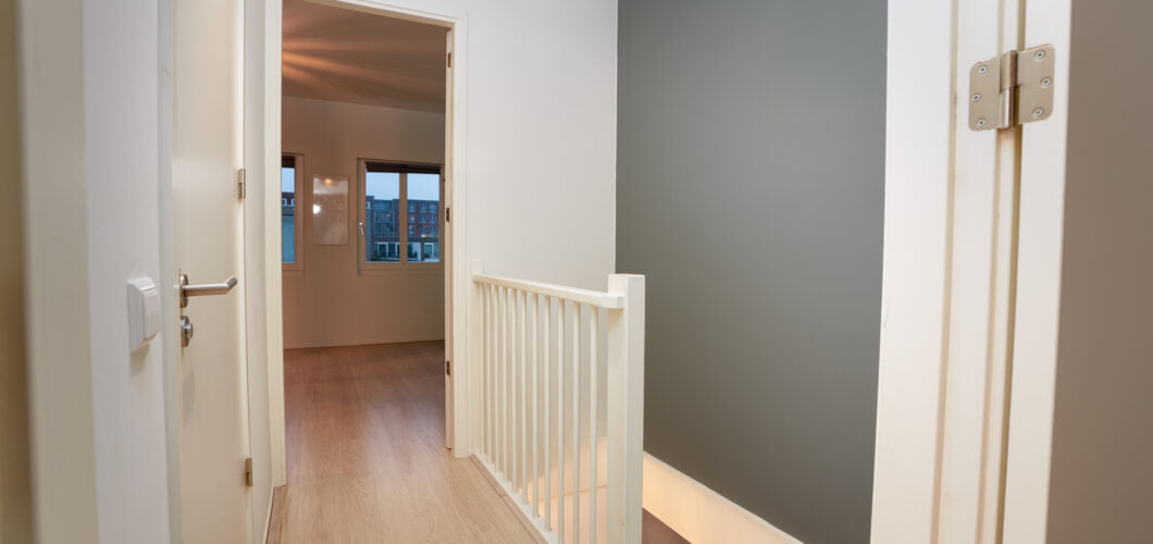 Op de eerste verdieping bevinden zich twee ruime slaapkamers, beide met een lichte uitstraling door de grote ramen. Deze verdieping biedt een fijne balans: groot genoeg voor een gezin of om te combineren met een thuiswerkplek, maar tegelijkertijd overzichtelijk en makkelijk te onderhouden.